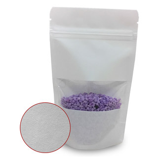 Standbodenbeutel aus weißem Kraftpapier mit Sichtfenster und Druckverschluss, 160 x 270 x 80mm, 750ml