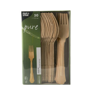 PAPSTAR 'pure' Holzgabeln 19,5 cm natur in schönem Vintage Design, 50 Stk.