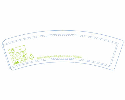 • Mit Aufdruck 'Zusammengefaltet gehöre ich ins Altpapier' und Prüfzeichen 'FSC', 'OK Compost' und 'TÜV'