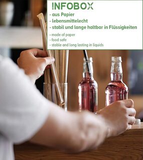 Trinkhalme aus Papier schwarz einzeln gehüllt Ø6mm 21cm, 100 Stk.