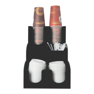 Mit diesem stabilen Spender-System platzieren Sie das Coffee ToGo-Zubehör einfach und praktisch - geeignet für Theken, Meeting- und Konferenzräume, Werkstätten, Praxen etc.