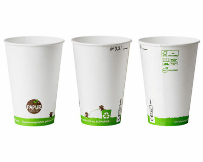 PAPUR bedeutet pures Papier. Das neue Mono-Material aus nachwachsendem Rohstoff ist die umweltfreundlichste Variante eines Papierbechers. Seine pflanzenbasierenden Naturfasern sind nach EN13432-2000 kompostierbar oder im Altpapier entsorgbar.