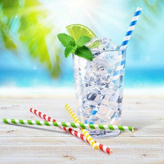 Papiertrinkhalme JUMBO gelb gestreift 250 mm Ø 8 mm, 100 Stk.