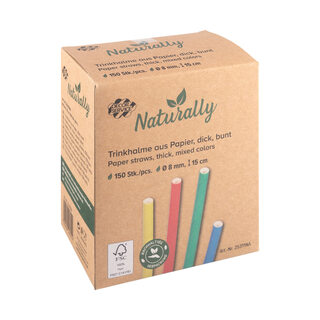 Trinkhalme aus Papier dick, bunt Ø8mm 15cm, 150 Stk.