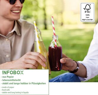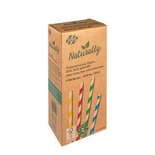 Trinkhalme aus Papier dick bunt gestreift Ø8mm 25cm, 150 Stk.