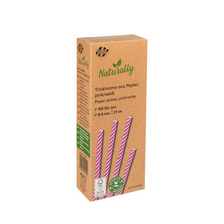Trinkhalme aus Papier pink gestreift Ø6mm, 21cm, 100 Stk.