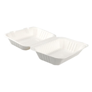 Menüboxen aus Bagasse, naturweiß, 23x15cm, 25Stk.