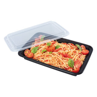 Mehrweg Menüboxen wiederverwendbar PP mit Deckel ungeteilt schwarz 29.5x20x5.5cm, 50 Stk.