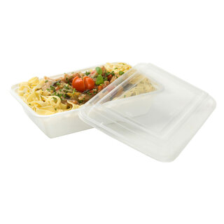 Mehrweg Menüboxen wiederverwendbar PP mit Deckel ungeteilt weiß 22x15x6.5cm, 50 Stk.